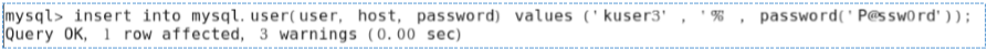 mysql> insert into mysql.user( user, host, password ) values( ‘계정명' , ‘접속경로’ , password('비 밀번호') );