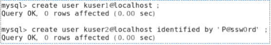 mysql> create user ‘user명’@’접속경로’ [ identified by ‘패스워드’ ] ;