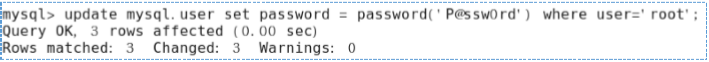 mysql> update mysql.user set password = password(' 비밀번호 ') where user='root';