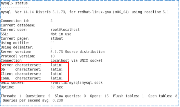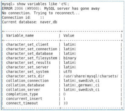 MySQL 기본 패키지는 기본 인코딩이 latin1 으로 설정되어 있음