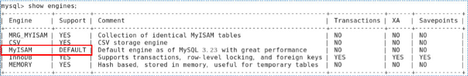 기존 MyISAM이 MySQL의 기본 엔진이었다면 MySQL 5.5부터는 InnoDB가 기본 엔진으로 변경됨