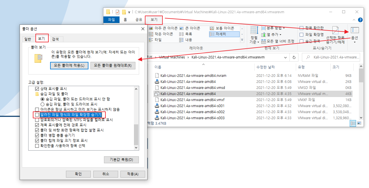 파일 탐색기에서 확장자 vmx가 안보이면