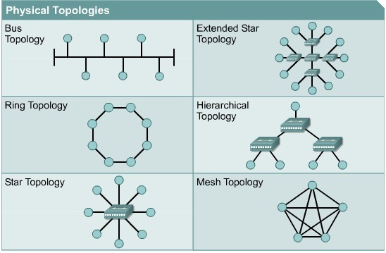 LAN은 장치들을 연결하는 형식, 즉 토폴로지(topology)에 따라 링형, 버스형, 스타형 등으로 분류된다.