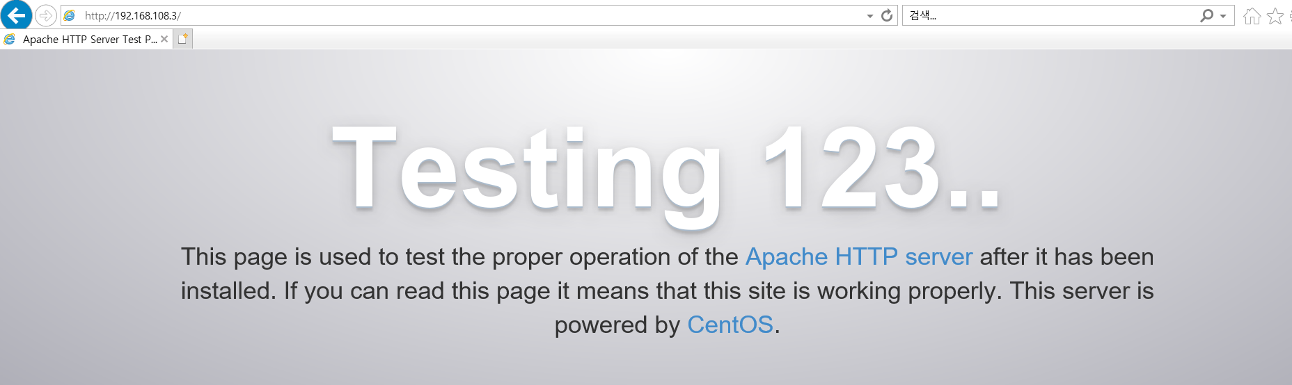http://192.168.108.3 <-- 기본 웹페이지가 출력된다.